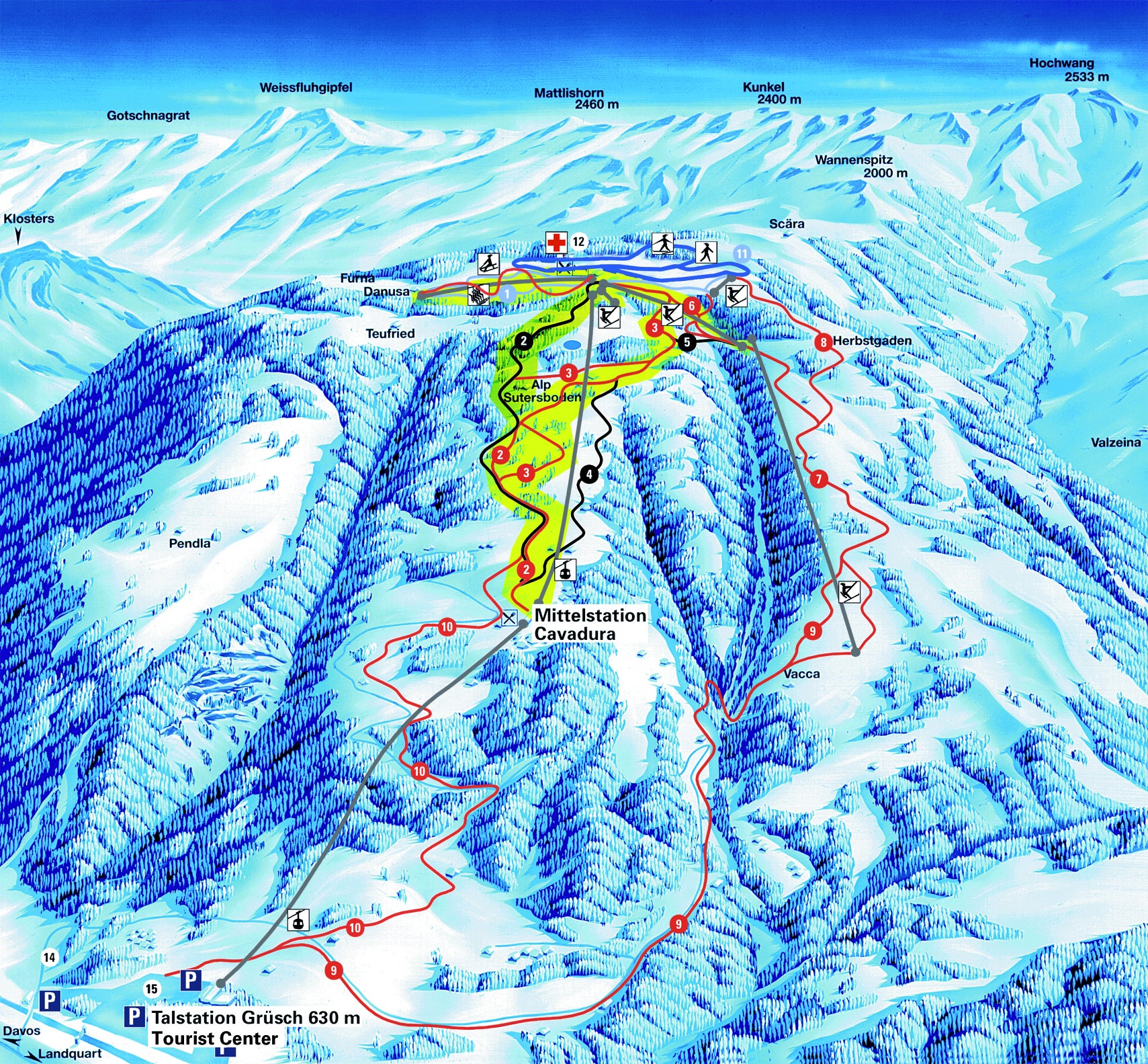 Grüsch Mapa zjazdoviekSpoznajte lyžiarske stredisko Grüsch - pozrite si, ako vyzerá mapa strediska Grüsch, naplánujte si lyžovačku na ďalší deň alebo si znova pripomeňte zjazdovky, ktoré ste už na lyžiach prešli. Kliknutím na mapu nižšie sa náhľad zväčšíZobraz mapu v plnej veľkosti