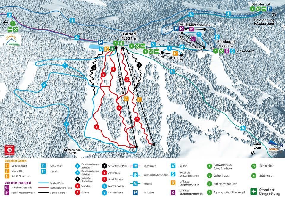 Spoznajte lyžiarske stredisko Stubalm - Gaberl - pozrite si, ako vyzerá mapa strediska Stubalm - Gaberl, naplánujte si lyžovačku na ďalší deň alebo si znova pripomeňte zjazdovky, ktoré ste už na lyžiach prešli. Kliknutím na mapu nižšie sa náhľad zväčší