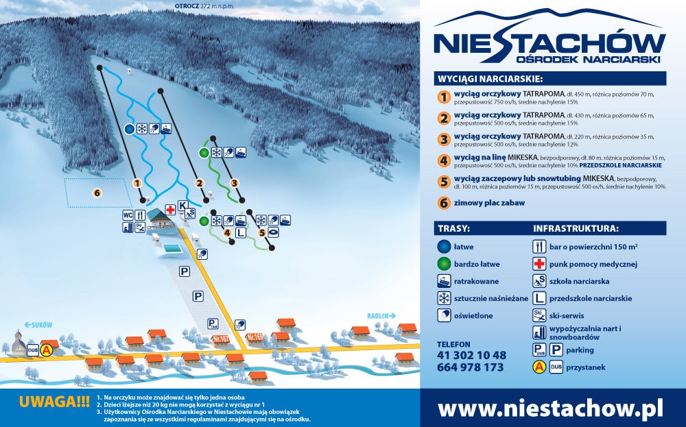 Spoznajte lyžiarske stredisko Kielce - Niestachów - pozrite si, ako vyzerá mapa strediska Kielce - Niestachów, naplánujte si lyžovačku na ďalší deň alebo si znova pripomeňte zjazdovky, ktoré ste už na lyžiach prešli. Kliknutím na mapu nižšie sa náhľad zväčší