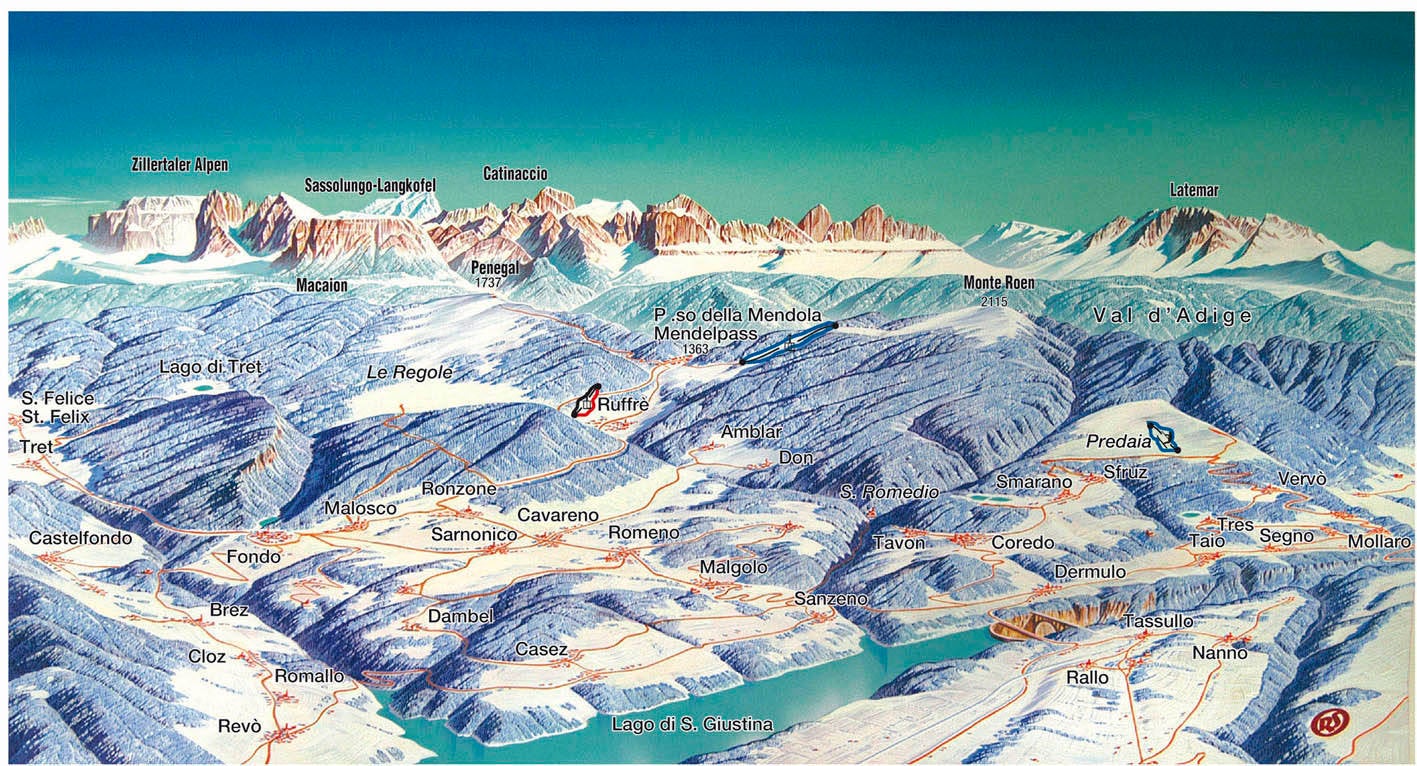 Predaia Mapa zjazdoviekSpoznajte lyžiarske stredisko Predaia - pozrite si, ako vyzerá mapa strediska Predaia, naplánujte si lyžovačku na ďalší deň alebo si znova pripomeňte zjazdovky, ktoré ste už na lyžiach prešli. Kliknutím na mapu nižšie sa náhľad zväčšíZobraz mapu v plnej veľkosti