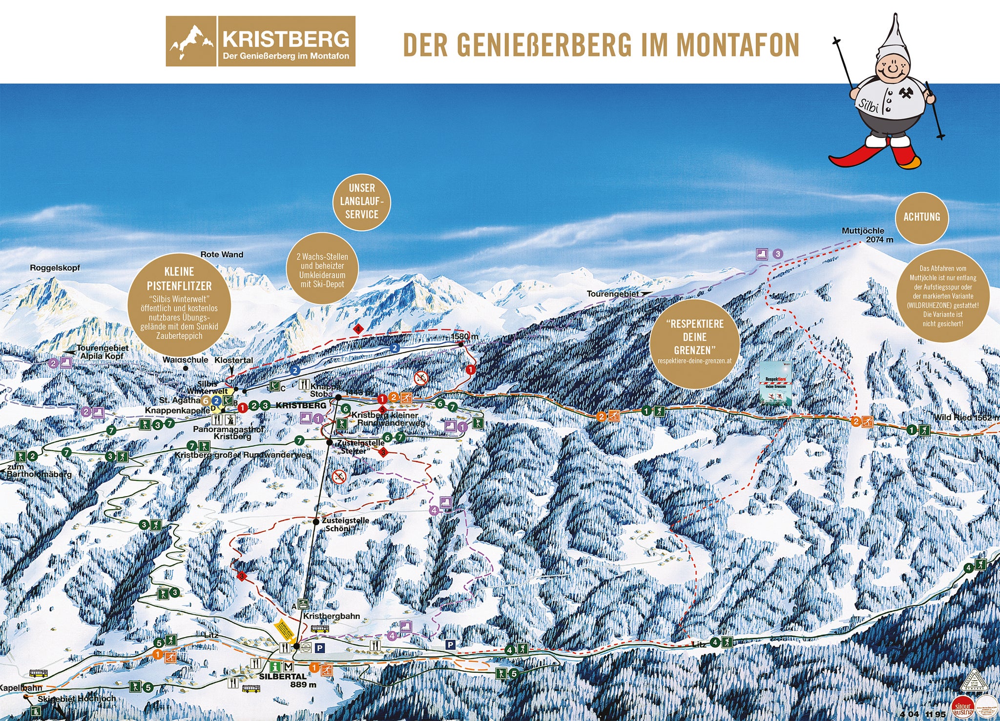 Spoznajte lyžiarske stredisko Kristberg Silbertal - pozrite si, ako vyzerá mapa strediska Kristberg Silbertal, naplánujte si lyžovačku na ďalší deň alebo si znova pripomeňte zjazdovky, ktoré ste už na lyžiach prešli. Kliknutím na mapu nižšie sa náhľad zväčší