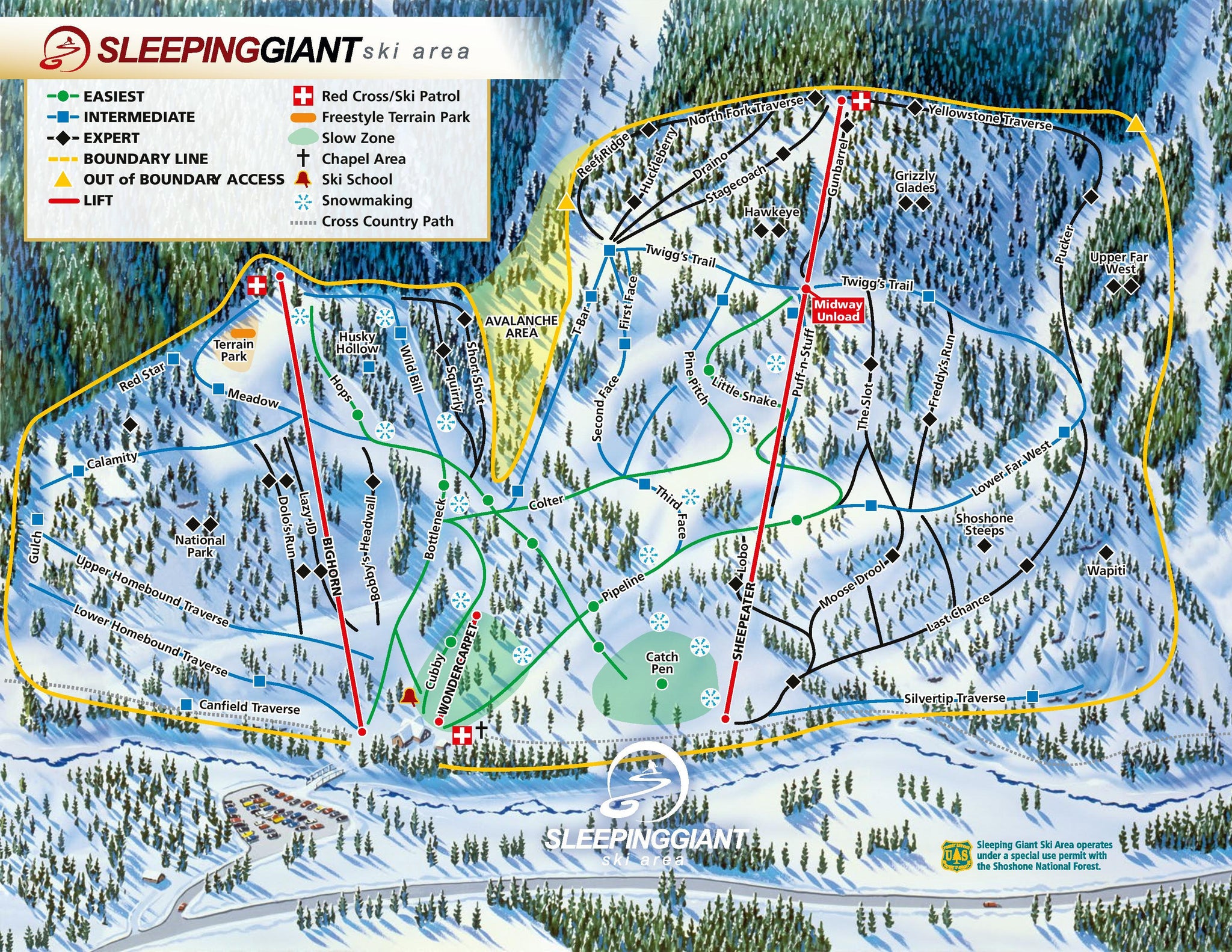 Spoznajte lyžiarske stredisko Sleeping Giant Ski Resort - pozrite si, ako vyzerá mapa strediska Sleeping Giant Ski Resort, naplánujte si lyžovačku na ďalší deň alebo si znova pripomeňte zjazdovky, ktoré ste už na lyžiach prešli. Kliknutím na mapu nižšie sa náhľad zväčší